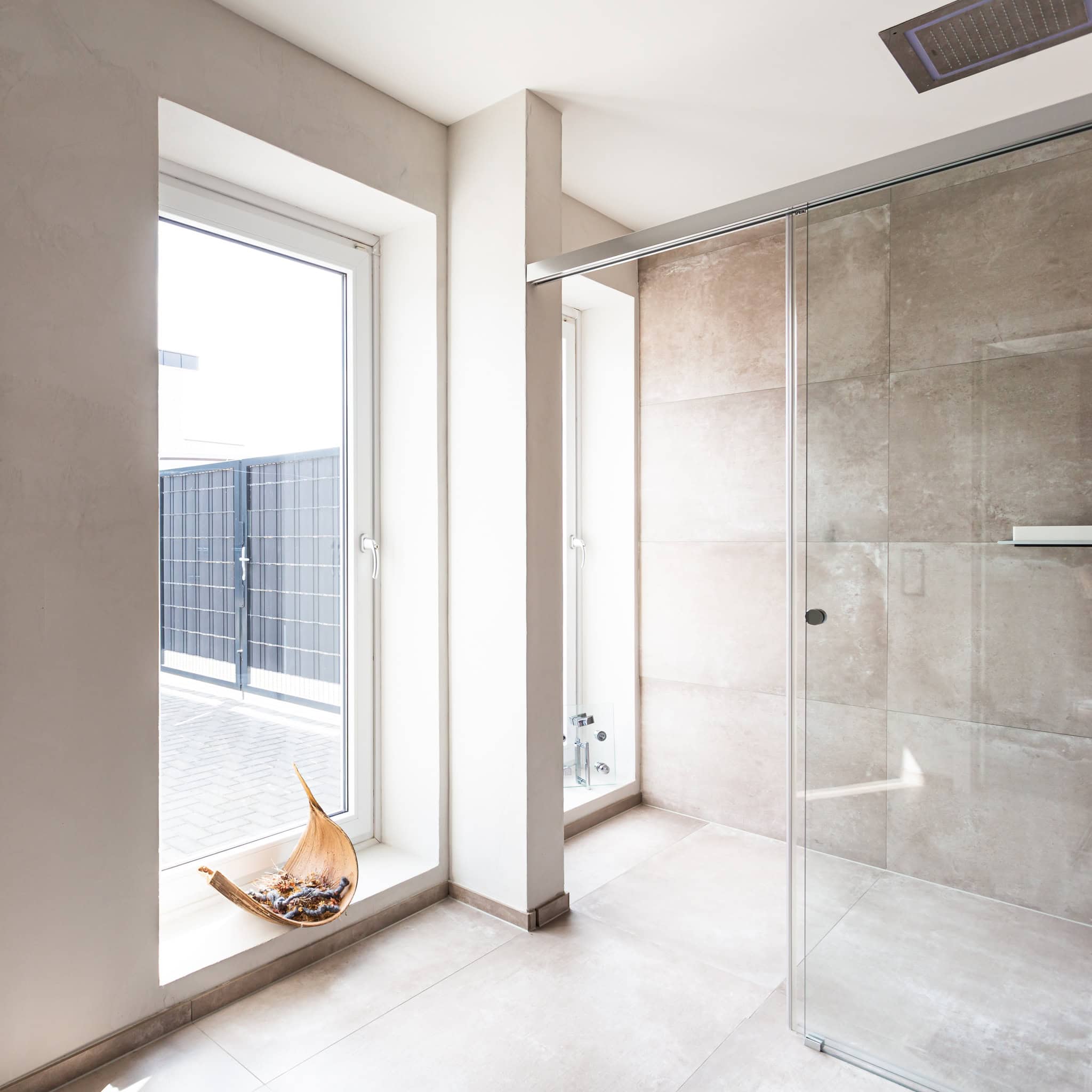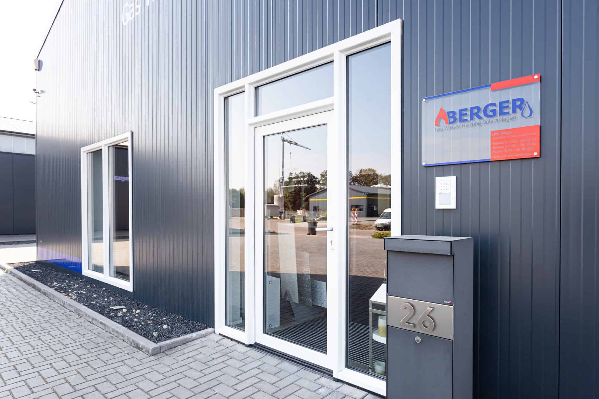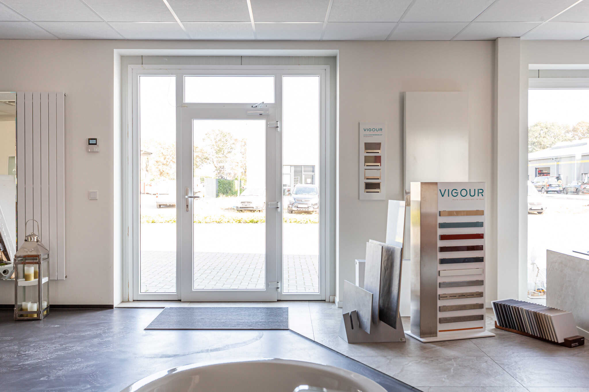 Durch den großzügigen Eingangsbereich und die vielen Fensterflächen ist der Ausstellungsbereich des Kunden lichtdurchflutet. Dies rückt die Badausstellung des Kunden ins rechte Licht und Besucher fühlen sich wohl.