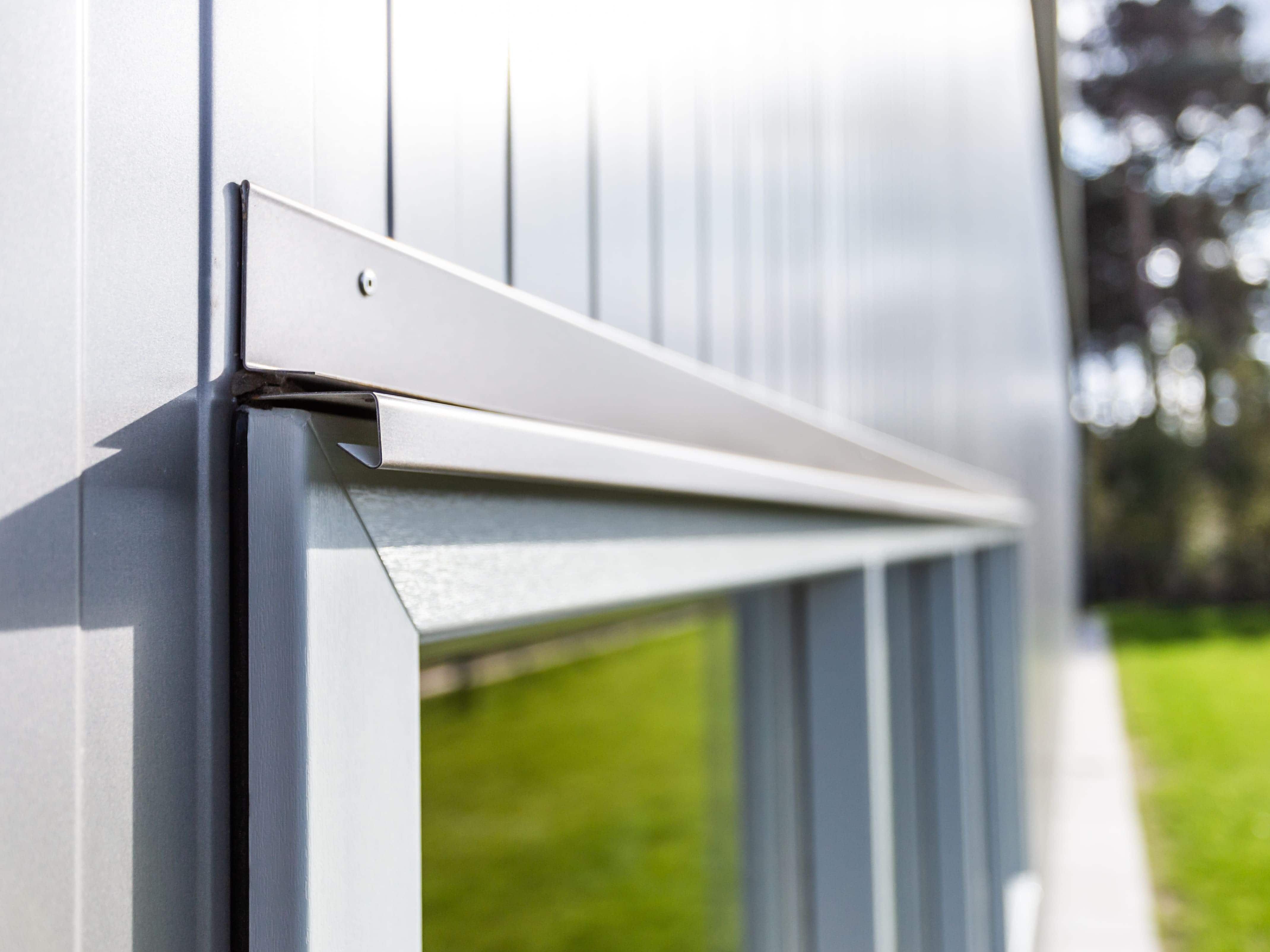 Die PACO Lösungen überzeugen nicht nur mit ihren funktionalen Qualitäten, sondern sorgen auch für ein hochwertiges Gesamtbild. Dies beweisen auch die PACO Kunststofffenster mit angebrachter Tropfkante, die für eine gezielte Wasserführung sorgen. Die Fenster mit der Rahmenfarbe AP34 (Grau) fügen sich dabei optimal ins Gebäude ein.