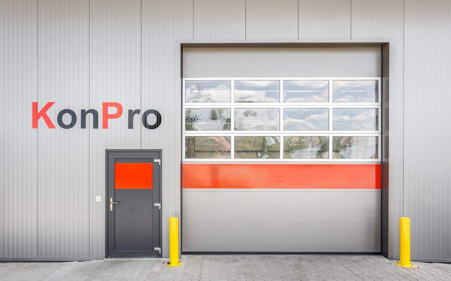 Eine vielfältige Auswahl gibt es auch bei den Türen und Toren. Auf Kundenwunsch wurden je drei Lichtsektionen in das elektrische PACO-Sektionaltor eingefügt. Die Abmessungen des Tores liegen bei 4,00 x 4,20 m (BxH) und bieten so selbst LKW’s genügend Freiraum zur Durchfahrt.