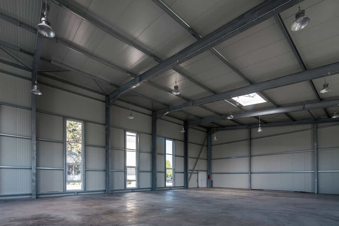Wir konzipieren unsere Hallen ohne lästige Stützen. Dadurch bietet die komplett freitragende Hallenkonstruktion einen offenen Arbeitsbereich. Zudem entsteht eine optische Vergrößerung des Halleninneren durch die großflächigen Fenster.